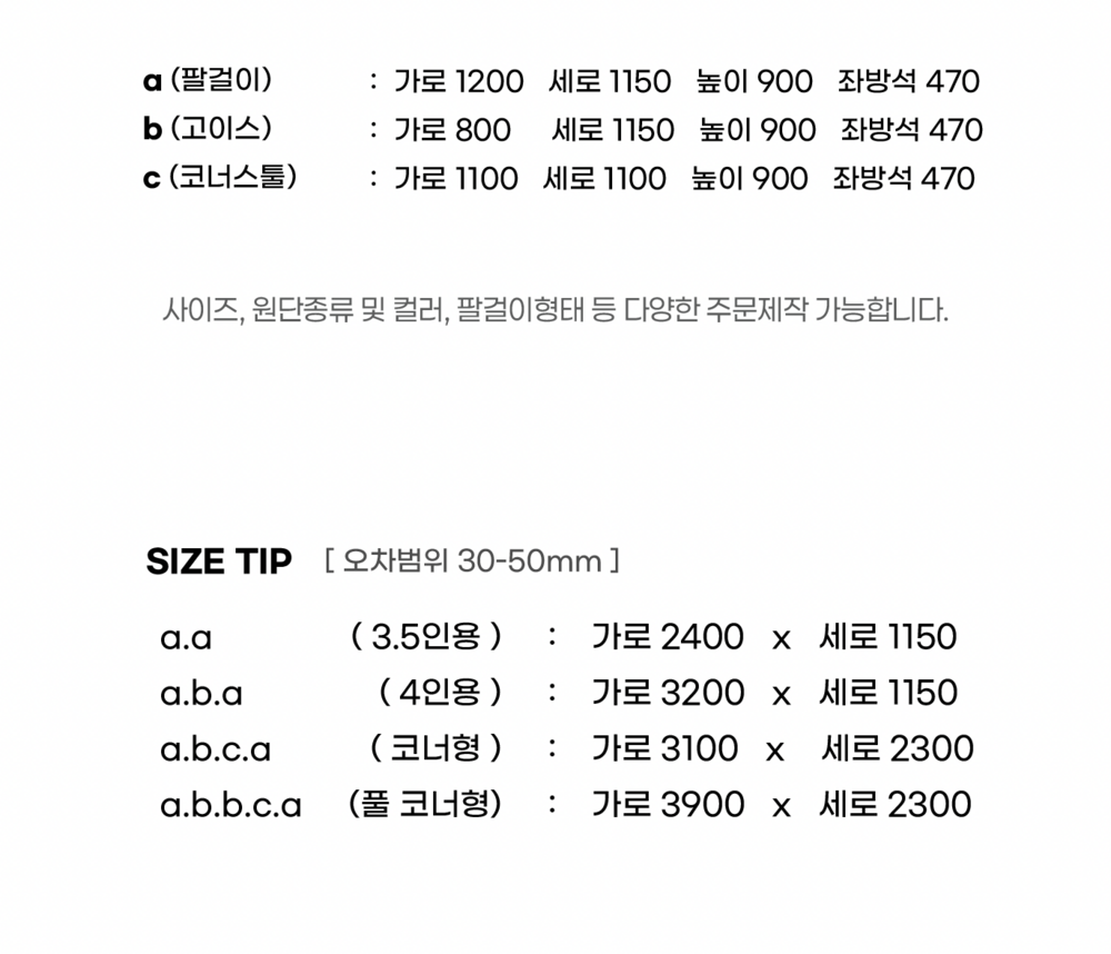 - 전 제품 주문제작으로 인하여 3-4주 소요되며, 제작이 완료되면 해피콜을 통하여 배송스케줄을 조율합니다.